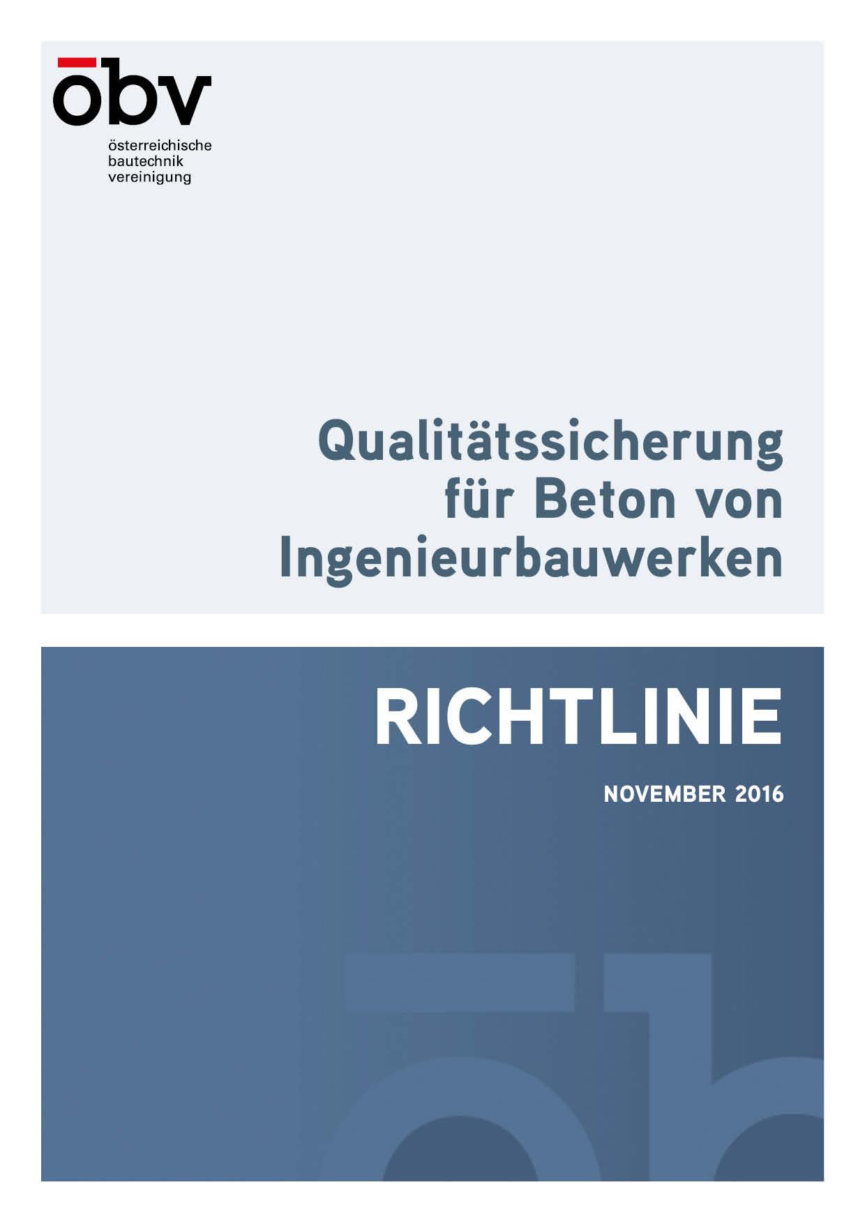 Die Richtlinie „Qualitätssicherung für Beton von Ingenieurbauwerken“ bildet ein Novum bei den öbv-Richtlinien. Werden sonst fast ausschließlich spezielle Techniken, besondere Bauverfahren, der Umgang mit besonderen Baustoffen und Kombinationen daraus beschrieben, kümmert sich diese Richtlinie um den Umgang mit dem Baustoff Beton, ohne auf spezielle Ausformungen bzw. Bauweisen besonders einzugehen.