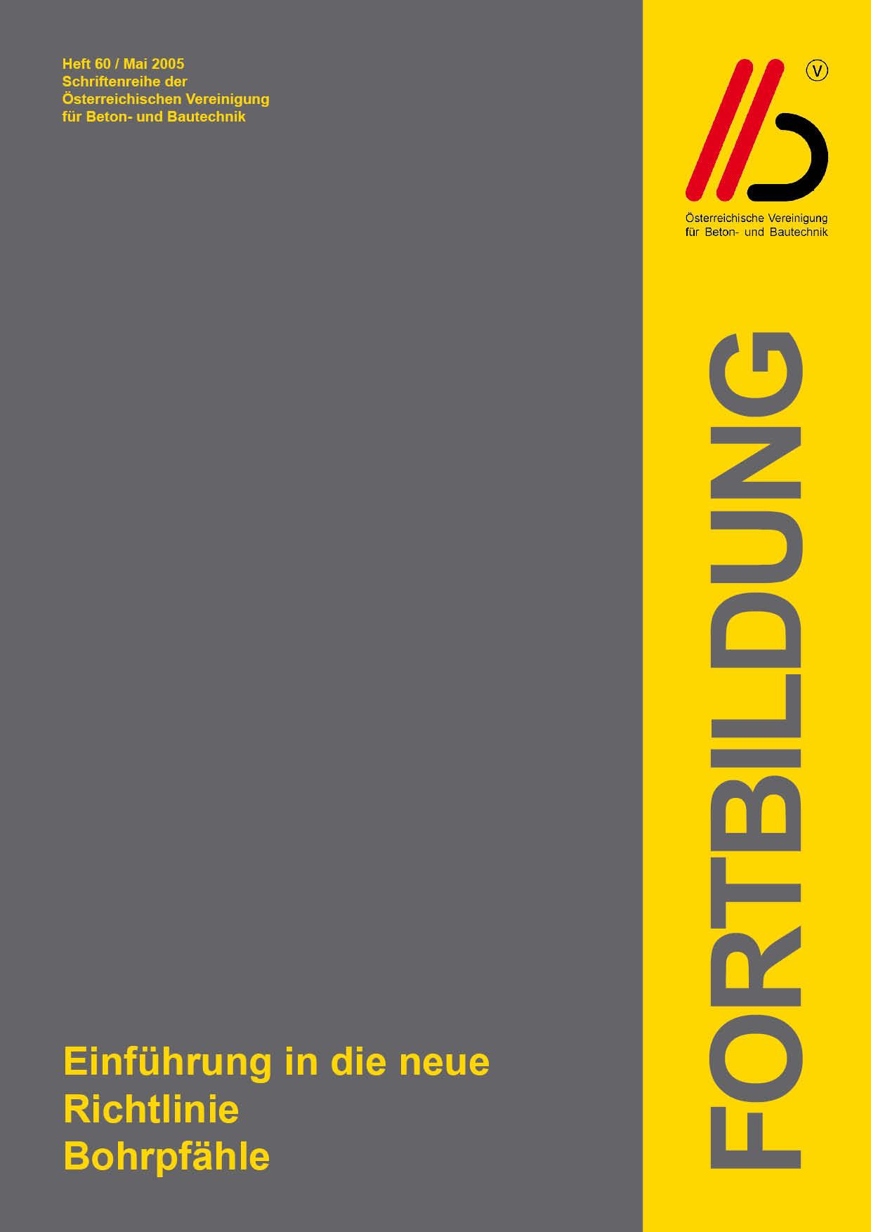Das Heft 60 befasst sich mit den Erläuterungen zur ÖVBB-Richtlinie "Bohrpfähle" im Bereich Klassifizierung, Ausführung, Bemessungen und Konstruktionsowie Betontechnologie. Das Heft bietet dem mit der Planung bzw. Ausführung von Bohrpfählen beauftragten Ingenieur eine Einführung in die entsprechende Richtlinie.
