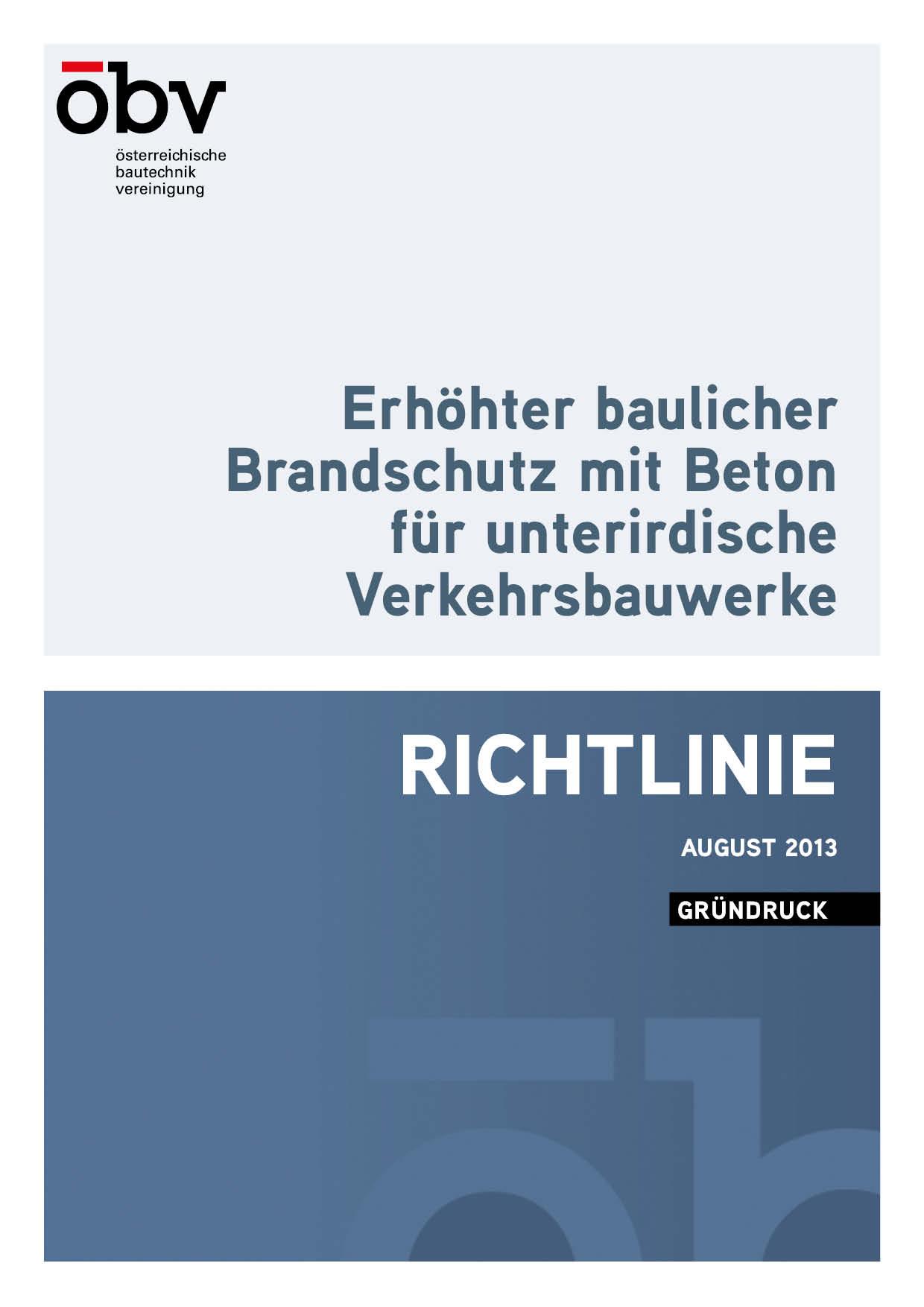 Gründruck Richtlinie "Erhöhter baulicher Brandschutz mit Beton für unterirdische Verkehrsbauwerke"